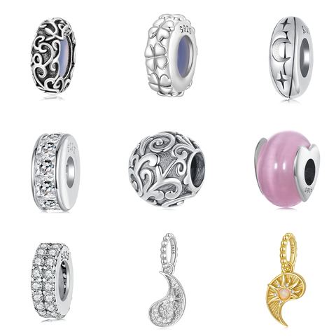 Vente en gros 925 Sterling Silver Moon Cat Flower Design Pendentif Perles Or Main Fit Bracelet Collier pour Femmes DIY Accessoire