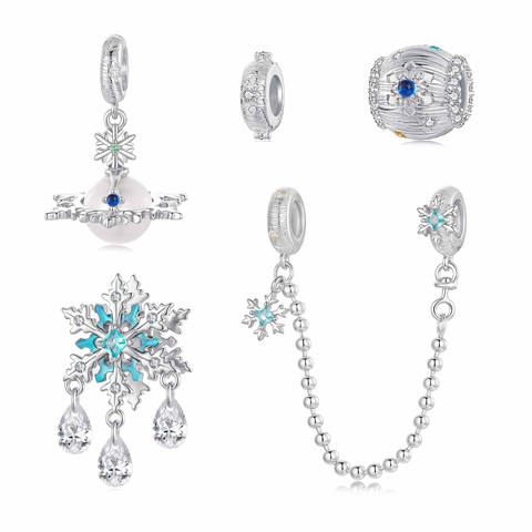 925 argent Sterling plaqué rhodium hiver flocon de neige breloque Zircon glace entretoise perles à la mode femmes Bracelet accessoires bricolage noël