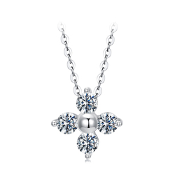 Brillant Moissanite Fleur Pendentif Collier Pour Les Femmes De Noce S925 Argent avec Or Blanc Placage Bijoux