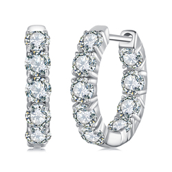 Boucles d'oreilles créoles en or blanc plaqué pour femmes, moissanite de laboratoire de couleur D, coupe ronde, argent 925, boucles d'oreilles hypoallergéniques