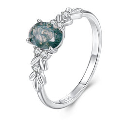 天然アゲイトオーバルステートメントリングレトログリーンシーグラスパターンバンドリング女性用925スターリングシルバーパーティーギフト