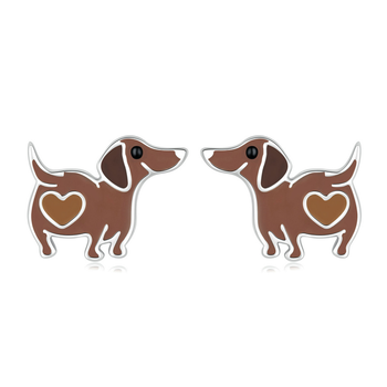 925 스털링 실버 닥스 훈트 스터드 귀걸이 에나멜 그레이 하트 귀여운 개 피어싱 귀걸이 여성용 십대 소녀 생일 선물