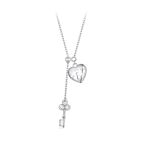 로맨틱 925 스털링 실버 심장 잠금 체인 펜던트 목걸이 여성용 스털링 실버 보석의 열쇠