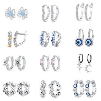 신상품 스털링 실버 925 고급 보석 지르콘 귀걸이 925 스털링 실버 cz 꽃 귀여운 스터드 귀걸이 여성용