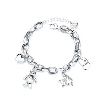 مجوهرات أنيقة بتصميم كلاسيكي من الفضة الإسترليني 925 مع قلادة على شكل قلب دب متعددة العناصر من مجموعة اصنعها بنفسك سوار بسلاسل للنساء