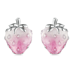 Hot Bán Shiny Màu Hồng Dâu Tây Stud Bông Tai 925 Sterling Silver Bạc Fine S925 Bạc Trang Sức Với Zircon Cho Đám Cưới Và Quà Tặng